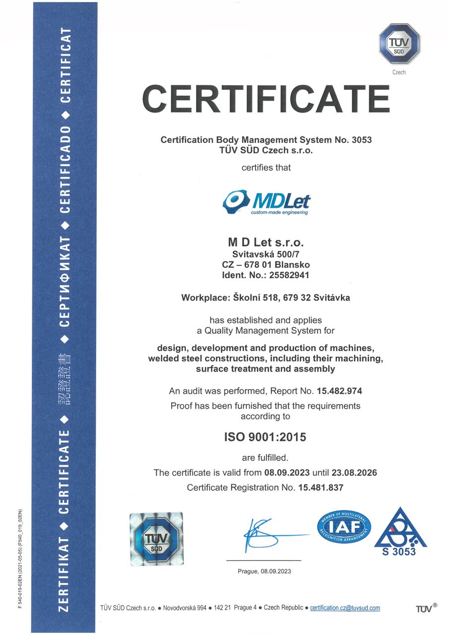 Das Qualitätsmanagementsystem wurde in unserem Unternehmen eingeführt, das nach den europäischen Normen ISO 9001, ISO 14001 und ISO 45001:2018.